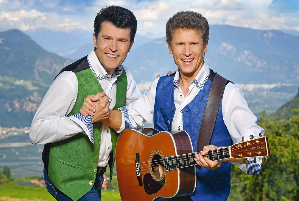 Im schönen Festsaal erleben Sie „Vincent & Fernando“, die beiden Brüder mit ihrer Volksmusik aus Südtirol. Die Sieger des Grand Prix der Volksmusik und „Der Engel von Marienberg“ sollten allen Fans wohlbekannt sein.